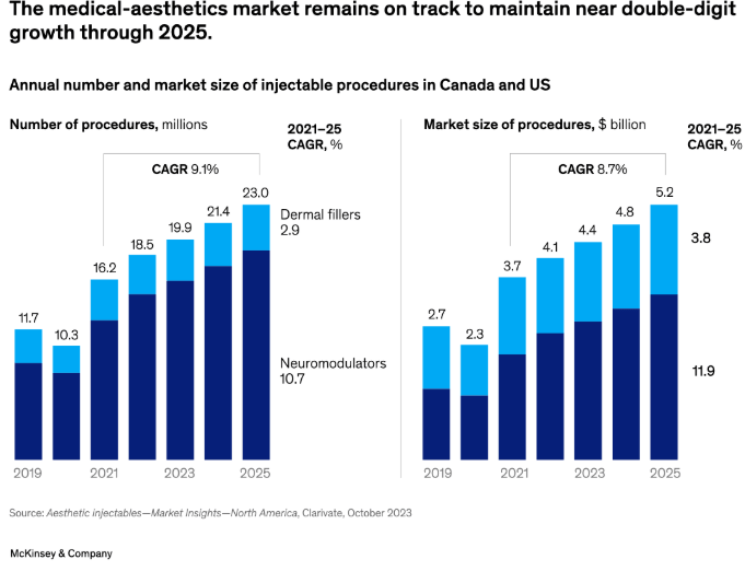 This movement isn’t just anecdotal and this cultural shift isn’t just something you feel—it’s backed by numbers. According to McKinsey & Company, the North American medical aesthetics market is expected to reach $5.2 billion by 2025, growing nearly 9% annually. Botox injections alone are increasing by 12% year-over-year. (McKinsey & Company, 2024).