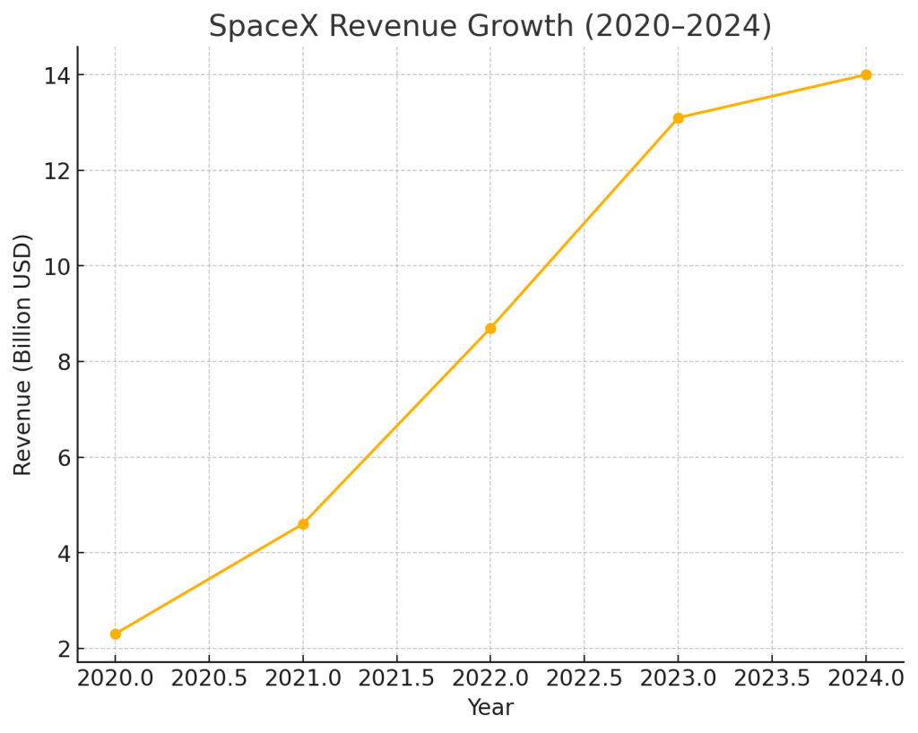 | Revenue Model | Satellite launch services, Starlink subscriptions, government & defense contracts |