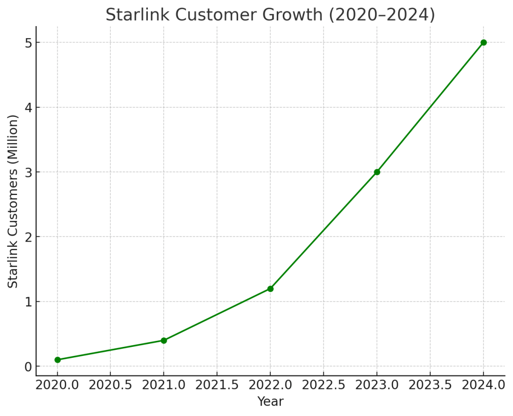 ✅ Starlink contribution: ~50–60% of 2024 revenue