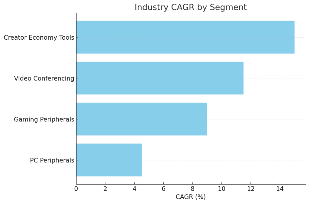 - Creator/streaming equipment: small but high-growth (~15% CAGR)