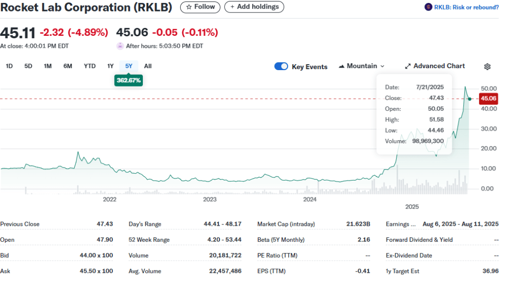Now headquartered in Long Beach, California, Rocket Lab has become a dual-nation space company with launch and manufacturing facilities in the U.S. and New Zealand. In 2021, it went public on NASDAQ via a SPAC merger under the ticker RKLB.