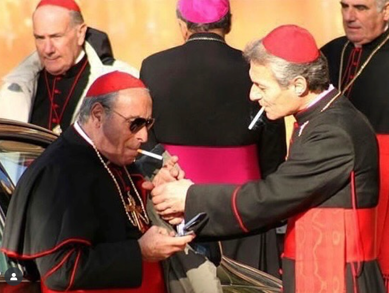 Last spring, amid the Vatican’s conclave frenzy, an old photograph of two cardinals lighting cigarettes went viral. Clad in black cassocks and red zucchettos, one leaned in with cupped hands to light the other’s smoke. Behind aviator shades, the second thumbed an old flip phone.